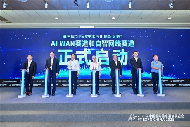 會(huì)上舉辦了第三屆“IPv6技術(shù)應(yīng)用創(chuàng)新大賽”AI WAN賽道和自智網(wǎng)絡(luò)賽道的啟動(dòng)儀式。鄔賀銓院士、聞庫(kù)理事長(zhǎng)、中國(guó)電信研究院張成良院長(zhǎng)、中國(guó)信息通信研究院敖立總工程師、中國(guó)聯(lián)通研究院唐雄燕副院長(zhǎng)、中國(guó)移動(dòng)研究院基礎(chǔ)網(wǎng)絡(luò)所程偉強(qiáng)副所長(zhǎng)、華為數(shù)據(jù)通信產(chǎn)品線王雷總裁上臺(tái)共同見(jiàn)證賽道正式啟動(dòng)。