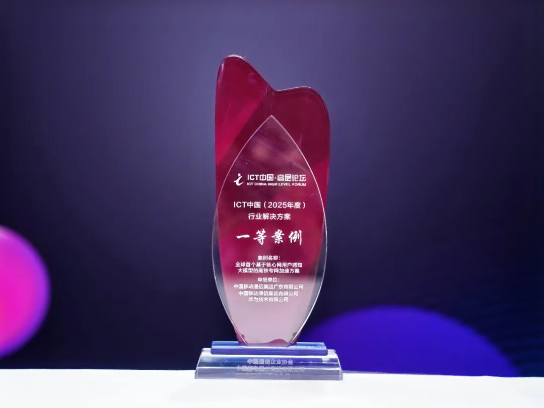 中國(guó)移動(dòng)集團(tuán)與廣東移動(dòng)聯(lián)合華為打造首個(gè)高鐵專(zhuān)網(wǎng)加速方案榮獲“ICT中國(guó)(2025年度)” 一等獎(jiǎng)