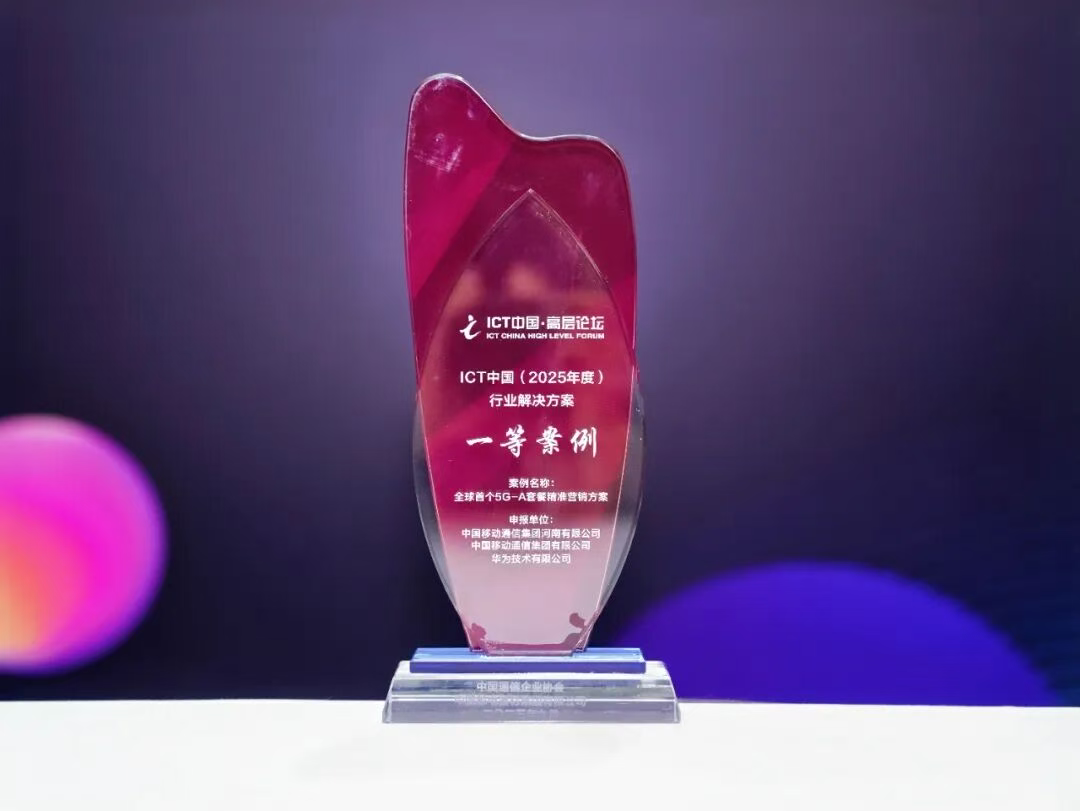 河南移動(dòng)聯(lián)合華為全球首創(chuàng)5G-A套餐"Try&Buy"精準(zhǔn)營(yíng)銷方案斬獲ICT中國(guó)(2025年度)一等獎(jiǎng)