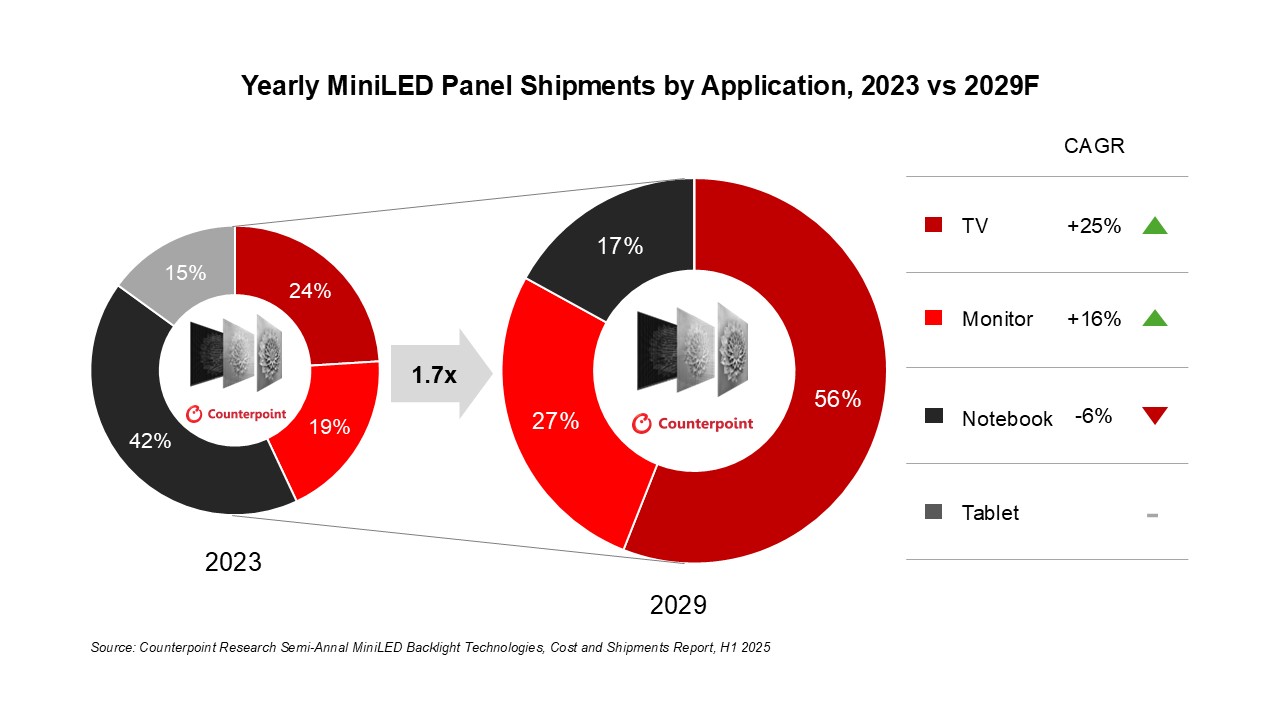 9 月 4 日消息,市場調(diào)查機構(gòu) CounterPoint Research 今天(9 月 4 日)發(fā)布博文,報告稱主要受中國品牌推動,2024 年全球 Mini LED 面板出貨量同比增長 20%。