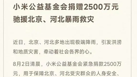小米捐贈(zèng)2500萬(wàn)馳援北京河北暴雨救災(zāi)
